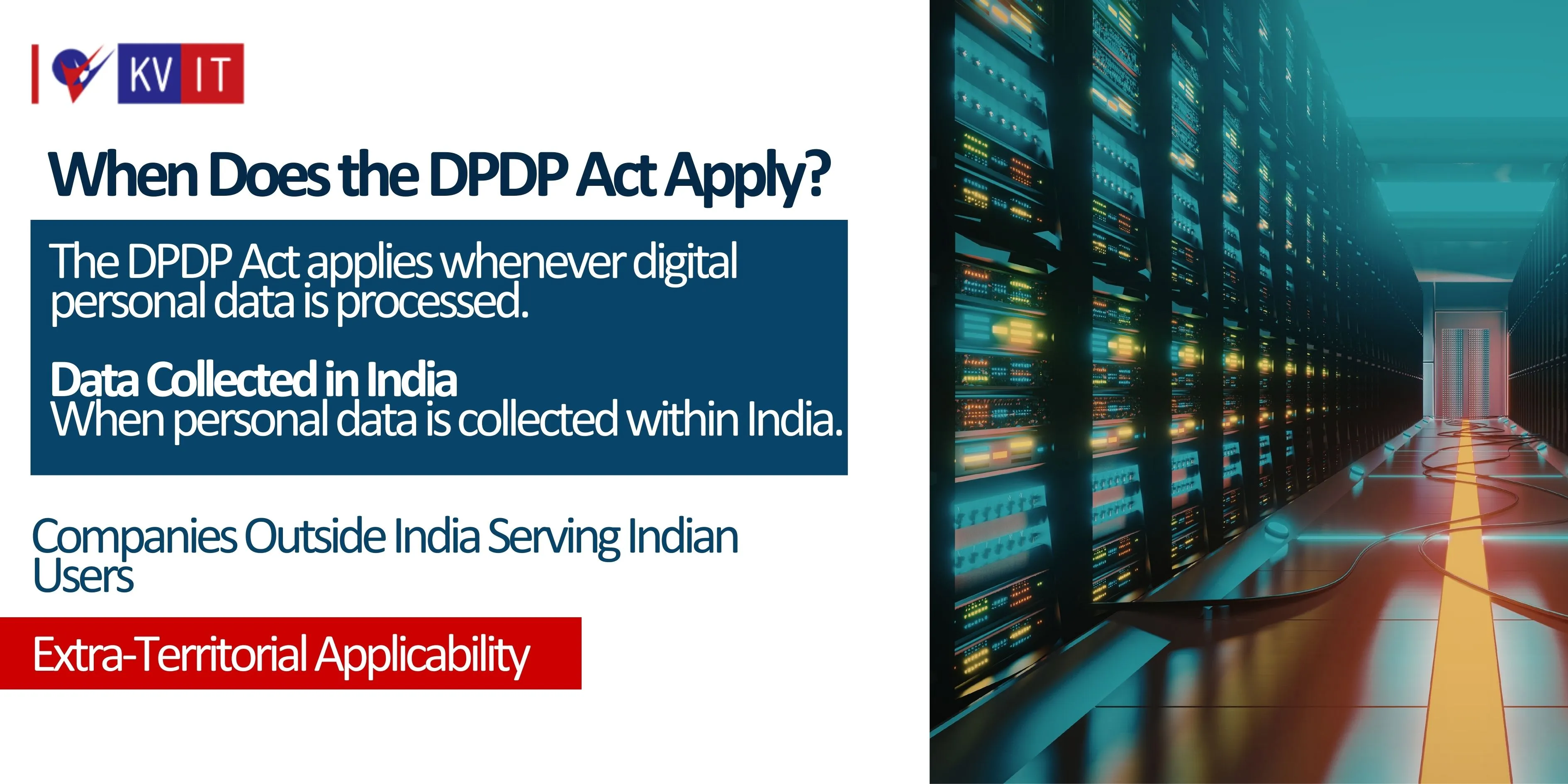It applies to any organization processing personal data of individuals in India, including companies outside India serving Indian users.