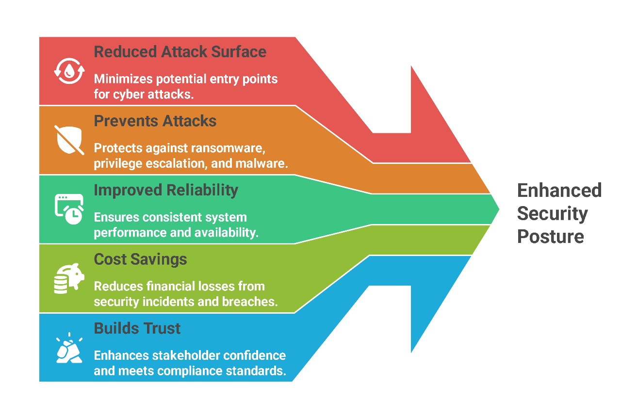 Hardening eliminates unnecessary risks by applying best practices and security benchmarks: