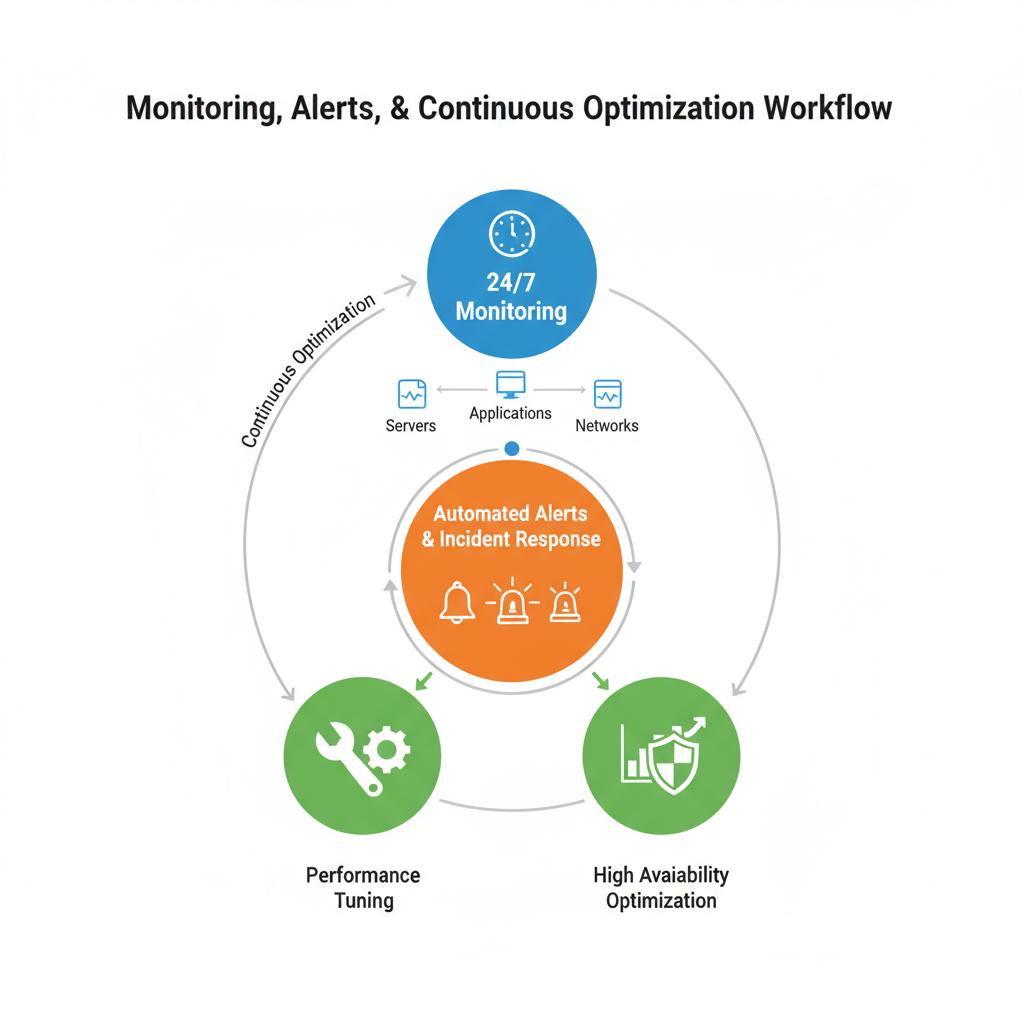 Ongoing Support & Optimization – Continuous monitoring, maintenance, and improvements