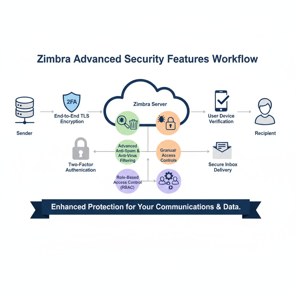 Security is a top priority for Zimbra, especially as businesses continue to rely on digital communication. Zimbra offers robust, built-in security features that ensure email data is always protected from external threats while maintaining compliance with privacy regulations.